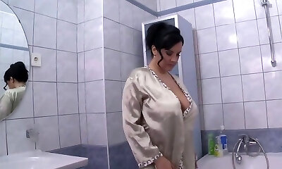super-naughty cougar knetet ihre reichlich bisse in einer seifigen hüpfburg badewanne