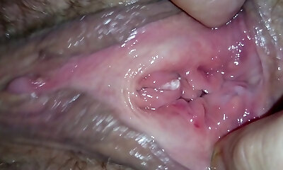 Spunk up together. So close you can smell it. Fledgling Wife's Hairy Swollen Pussy Fuck. Cuming inside. Dripping Creampie