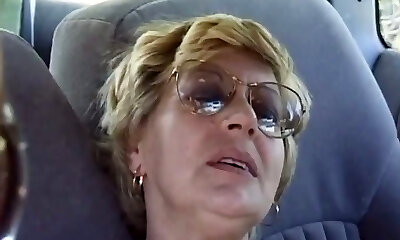 Mature Pauline frigs her old pussy in a truck and gets fucked