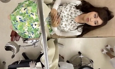 chica asiática consiguiendo su coño revisado y golpeado por el médico