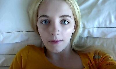 adorable nena rubia con ojos azules, kate bloom hizo su mejor esfuerzo para hacer su semen espacioso
