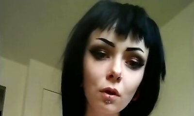 Awesome brunette European goth nymph on webcam masturbating