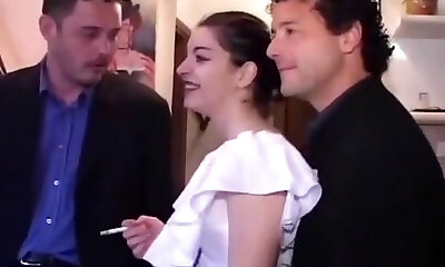 ogromne piersi trochę mały platynowa blondynka dziwka pieprzy się z dwoma facetami, podczas gdy jej mąż patrzy