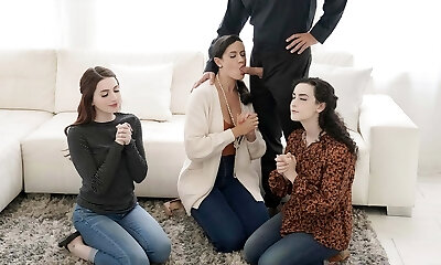 3 ciemnowłose nastolatki nie mają nic przeciwko, aby podzielić się męskość