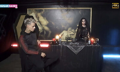 środa addams pokazuje goth połknąć techniki! niesamowite koński ogon tłoczenie throatpie skończył!