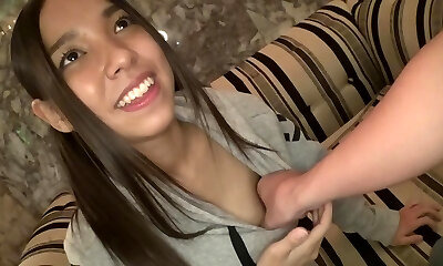 Big-jugged asian schoolgirl fucks with a stranger raw in a tent