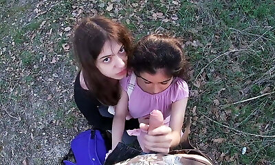 A Latin schoolgirl publicly sucked a dick and fucked in a doggy fashion with her friend.