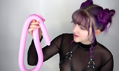 Hotkinkyjo in purple jimjams belly full salute with huge dildo from johnthomastoys, fisting & anal prolapse