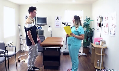 Mischievous nurse in a miniskirt Jasmine Jae rides her patient to get well